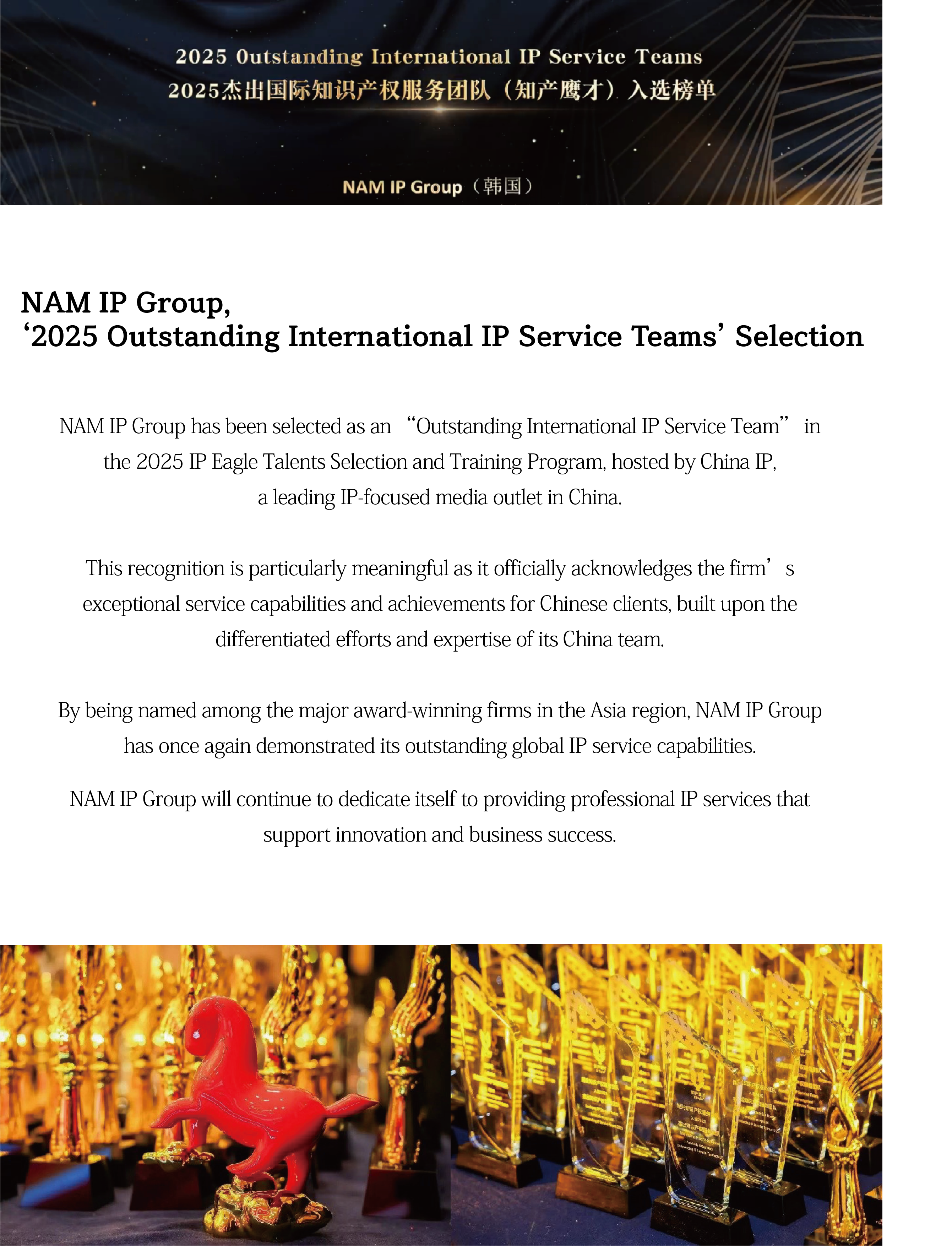 NAM IP Group has been selected as an “Outstanding International IP Service Team” in the 2025 IP Eagle Talents Selection and Training Program, hosted by China IP, a leading IP-focused media outlet in China.